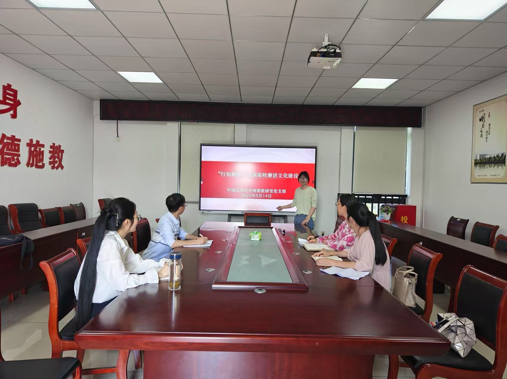2025年5月14日下午,中国近现代史纲要教研室党支部在英国365集团公司5508会议室开展师德师风警示教育并讲授廉政党课。