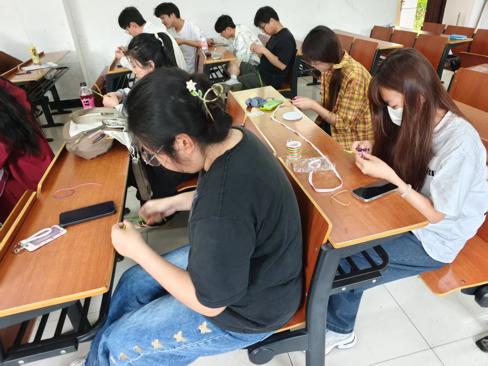 活动伊始,活动负责人通过生动有趣的讲解,为青年们揭开五彩绳的神秘面纱。负责人详细阐述了五彩绳在中华传统文化中的起源、寓意和发展历程,从端午辟邪祈福的象征,到承载着人们对美好生活的向往,五彩绳所蕴含的深厚文化内涵让在场青年赞叹不已。随后,在手工制作环节,青年们热情高涨,在社团志愿者的指导下,灵巧的双手穿梭于五彩丝线之间,不一会儿,一根根色彩斑斓、造型别致的五彩绳便诞生在大家手中。大家相互展示、交流心得,现场洋溢着欢乐与创意的氛围。