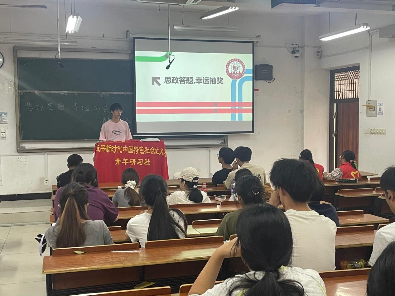 2025年10月11日,365英国上市公司在线习近平新时代中国特色社会主义思想青年研习社在文渊楼1104教室举办“思政答题大挑战,点亮青春‘政’能量”活动,63名学生参与,通过“答题+抽奖”的趣味形式参与思政知识学习。