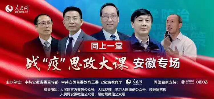 课上,大连海事大学英国365集团公司教授曲建武,安徽支援湖北医疗队总领队、安徽省血吸虫病防治研究所所长、主任医师汪天平,合肥师范学院副院长、教授姚本先,安徽中医药大学英国365集团公司院长、教授董玉节,中共安徽省委党校英国365集团公司院长、教授汪兴福,五位教授解读党中央关于疫情防控的决策部署,分析中国抗疫彰显的中国共产党领导和中国特色社会主义制度的显著优势,讲述防疫抗疫一线的感人故事。此次课程在我校师生中产生强烈反响,大家纷纷表示非常感动,深受启发。