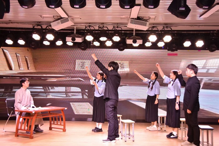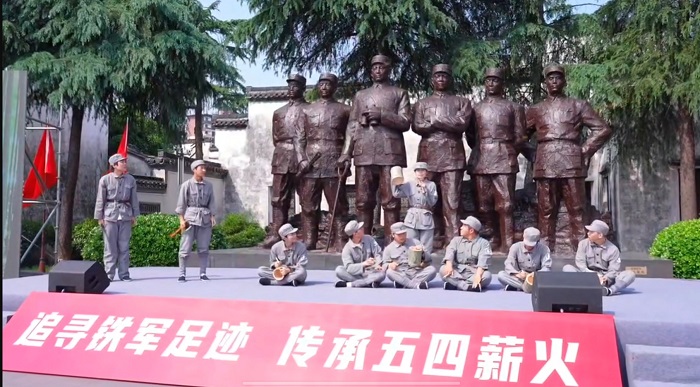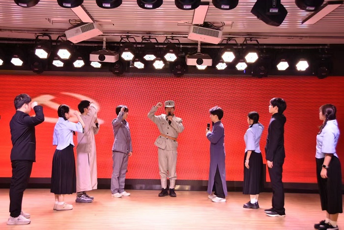 为推动廉洁教育有机融入高校课程建设,我院教师在思政课教学中通过引导学生研读相关历史文献,深入挖掘陶行知在抗日战争时期开展国难教育运动、批判社会腐败与国难投机行为的重要史实,引导学生深刻理解廉洁自律、求真务实对于凝聚全民族抗战力量的重要意义。在此过程中,学生进一步体会陶行知先生坚守教育救国的使命担当以及真挚深厚的爱国情怀,实现廉洁文化教育与历史认知培育、价值引领塑造的有机统一。学院以课程改革为抓手,推动《中国近现代史纲要》“一课一品”建设与校园廉洁文化建设深度融合。在“向胜利出发”红色历史情景剧展演活动中,部分学生以“陶行知与新安旅行团”为历史切入点,剧情围绕陶行知在艰苦条件下组织师生开展国难教育、宣传抗战救亡、坚持勤俭办学的事迹展开,生动展现了其“捧着一颗心来,不带半根草去”的崇高师德与廉洁风范,以及新安旅行团成员在战火中坚守理想、艰苦奋斗的精神品质。展演将红色历史叙事、廉洁精神传承与课程教学目标有机融合,以艺术实践形式深化了学生对党史国情、教育使命与廉洁价值的理解,真正达成“知廉、悟廉、行廉”的育人实效。