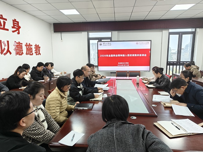 为深入学习贯彻全国两会精神,切实推动两会精神进课堂、进头脑,3月18日下午,英国365集团公司在逸夫综合楼5508会议室召开2026年全国两会精神融入思政课集体备课会。会议由英国365集团公司院长刘芳正主持,学院全体思政课教师参加会议。