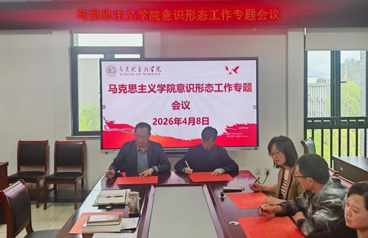 会议严格落实“第一议题”制度,学习了习近平总书记关于意识形态工作的重要论述;学院副书记(主持工作)廖荣军代表英国365集团公司党总支,与各党支部书记、教研室主任逐一签订责任书;各党支部书记、教研室主任围绕课堂教学、阵地管理、风险防范等进行了简要交流研讨。